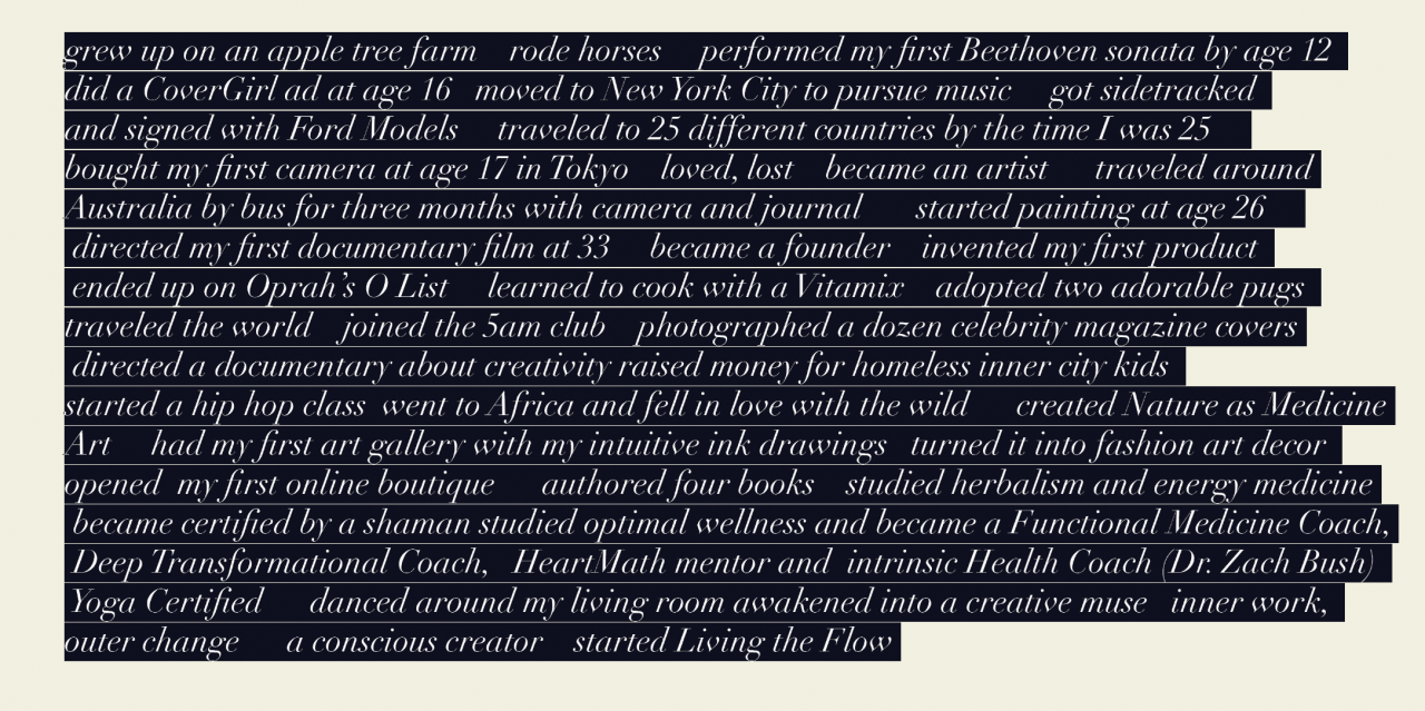 I am grounded in the real world. I understand excellence, leadership, creative direction, and what it takes to bring something meaningful into form. And I understand the inner terrain that drives it all.